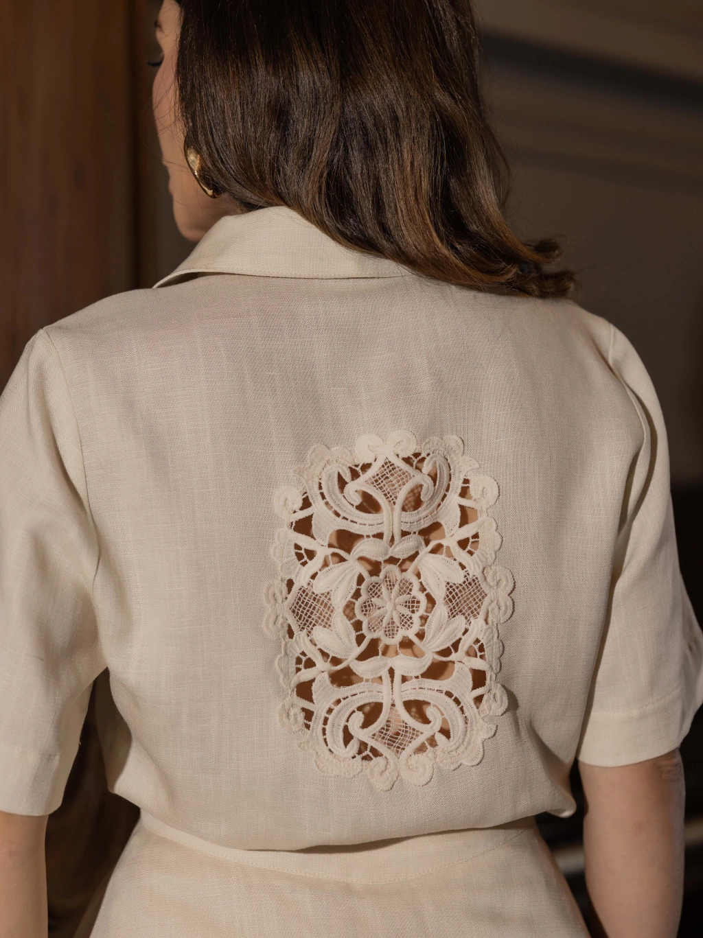 Descubra o CONJUNTO LINHO APLIQUE VAZADO, perfeito para quem valoriza elegância e conforto em um só look. A camisa apresenta modelagem reta, gola polo clássica e mangas ¾, além de um delicado aplique de renda vazado nas costas, conferindo charme extra. O abotoamento frontal com botões encapados garante praticidade e um toque sofisticado.